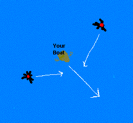 that they will intersect each other. Once you have them in a good path paddle slowly away from them.